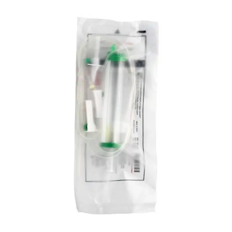 - ✅ محفظه مدرج (بورت) برای کنترل حجم: ویژگی اصلی این ست، محفظه شفاف و مدرج آن (معمولاً با حجم ۱۰۰ یا ۱۵۰ سی سی) است. پرستار می تواند حجم دقیق مورد نیاز برای یک ساعت را در این محفظه ریخته و با اطمینان از اینکه حجم بیشتری به بیمار نمی رسد، تزریق را انجام دهد.